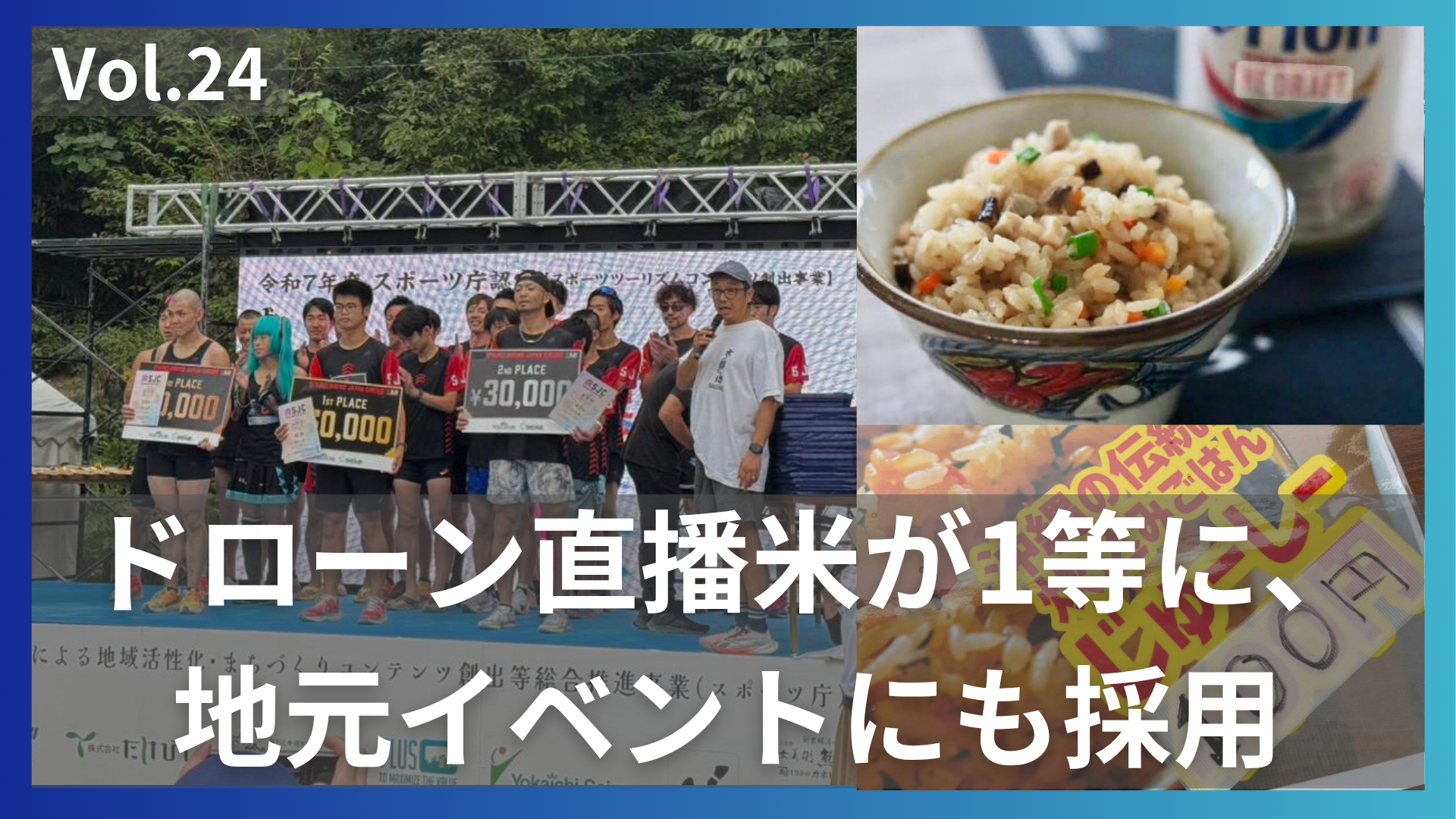 本イベントでは、農業の新しいかたちを紹介する展示も行われ、”地元企業が地元の新技術で育てた米を使う”という地域循環モデル事例として来場者の関心を集めました。次年度はイベントが開催されたこの地域でもドローン直播の試験的導入が行う予定です。