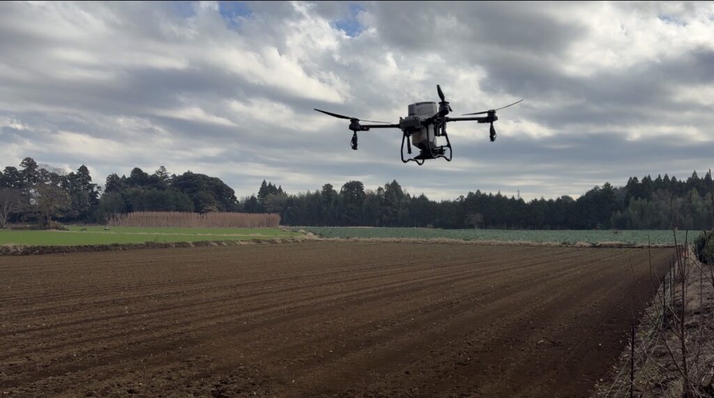 今回はその取り組みの一環として、ドローンによる緑肥散布を実際の圃場で行いました。