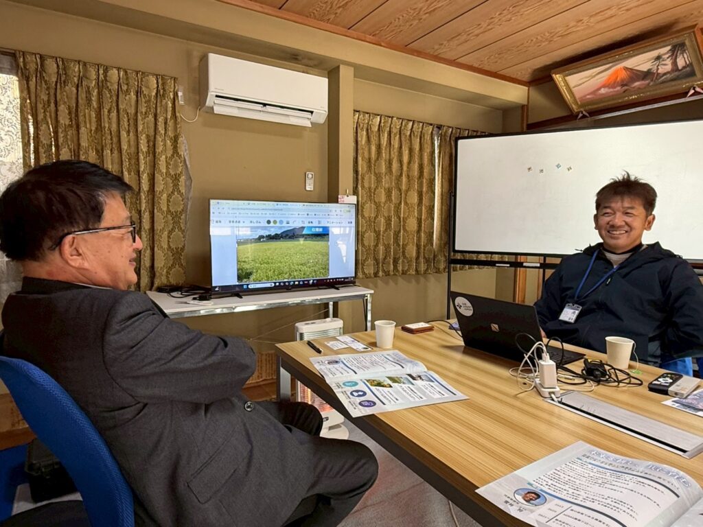 当日は、現場を起点とした農業支援の考え方や、ドローンを活用した作業の省力化・効率化、さらに持続可能な農業を実現するための地域連携の重要性について、率直な対話の時間となりました。