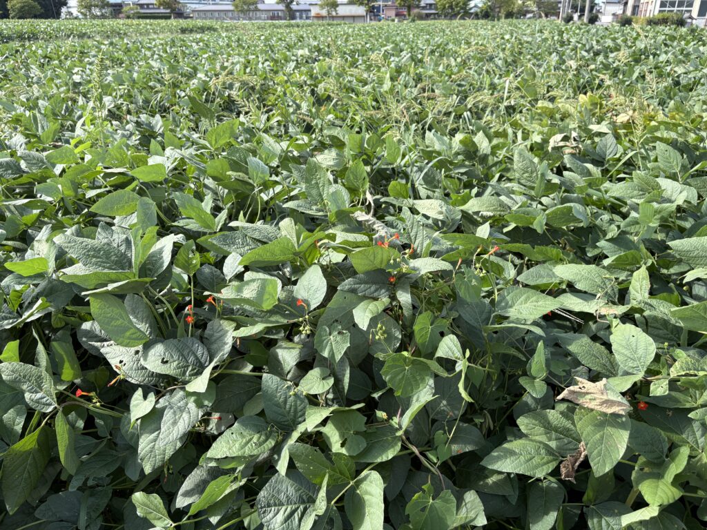 水稲栽培で管理が疎かになりがちな作業をドローンでサポートし、綺麗な大豆生産に貢献します。